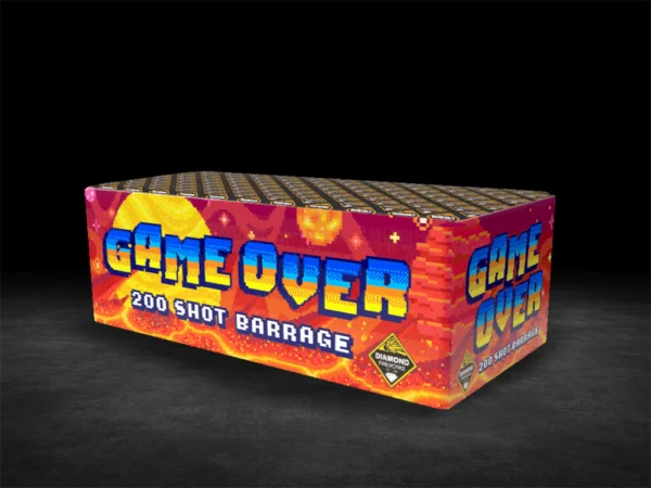Upon lighting the fuse the Game will be well and truly be on. As each of the 30mm tubes explode into the night sky with ravaging effects, the intensity and fury of this awesome barrage will increase until its huge finale signalling that the Game is Over! This 200 shot monster barrage wont disappoint.