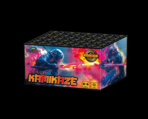 Get ready for an aerial assault with Kamikaze, the high-energy 30-shot barrage from Hallmark Fireworks that dives headfirst into explosive action. Packed with 564g of NEC, this mid-sized beast delivers a relentless flurry of rapid-fire effects that command attention from launch to finale.