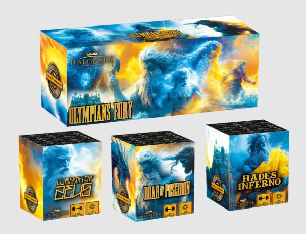 Unleash the full power of ancient mythology with Olympians Fury, an awe-inspiring barrage pack from Hallmark Fireworks. This premium triple-threat collection brings together the divine wrath, thunderous might, and infernal spectacle of three legendary gods — Wrath of Zeus, Roar of Poseidon, and Hades Inferno — in one explosive ensemble.