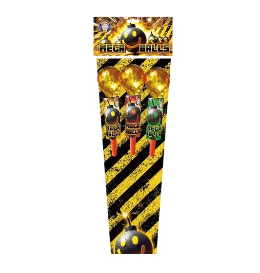 Unleash massive aerial power with Mega Balls — a premium 3-rocket pack from Brothers Pyrotechnics featuring classic onion-head designs that deliver spectacular sky-filling bursts. Each rocket climbs with force before erupting into a huge spherical break of vivid colour, glitter, or brocade that hangs beautifully in the air.