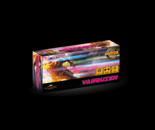 Get ready for the ultimate fireworks extravaganza with Vanquish by Hallmark Fireworks! This dynamic compound packs a punch with 320 shots that dazzle the sky with colourful stars, dazzling strobes, and a myriad of other captivating effects. Lasting 2 minutes and 10 seconds and weighing 3660 grams, Vanquish promises an unforgettable display that will leave spectators in awe.